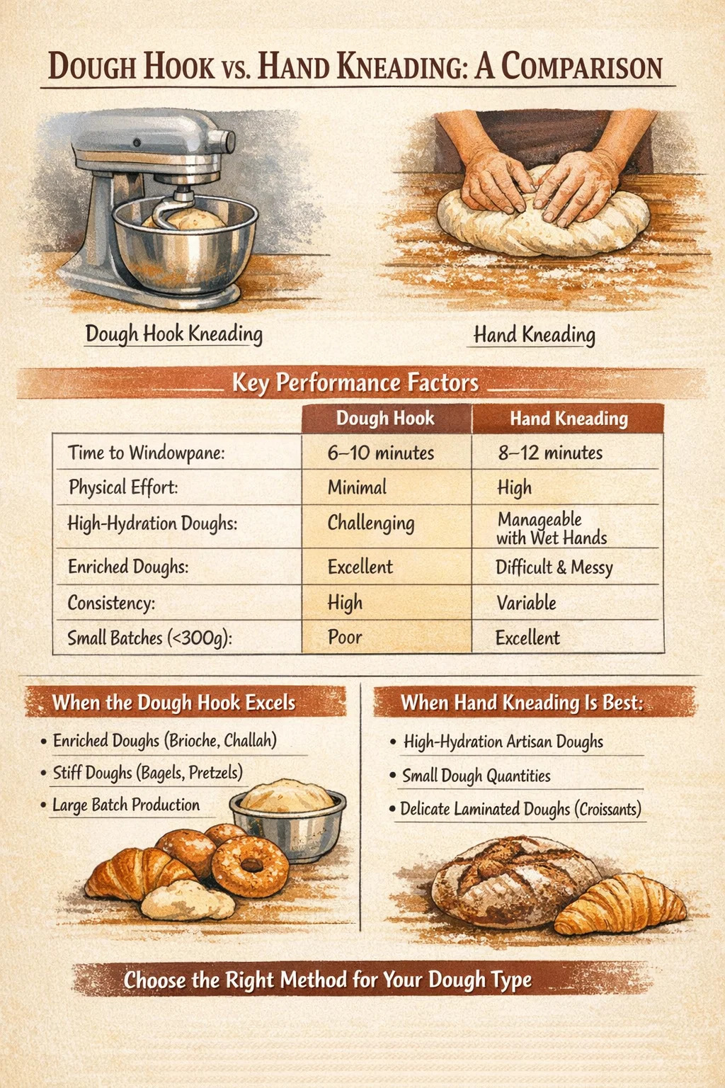 Да, крюк для теста может заменить ручное замешивание в большинстве рецептов хлеба и макарон, но с важными оговорками. Настольный миксер, оснащенный крюком для теста, достаточно хорошо повторяет движения растягивания и складывания при ручном замешивании, чтобы образовать сети клейковины, сравнимые с теми, которые достигаются вручную. Однако результаты во многом зависят от гидратации теста, качества миксера, настроек скорости и типа хлеба, который вы печете. Крюк для теста является совершенно надежной заменой для повседневных бутербродов, теста для пиццы и обогащенного хлеба. Для ремесленных заквасок с высоким содержанием влаги или очень нежного теста для выпечки история становится более нюансированной.