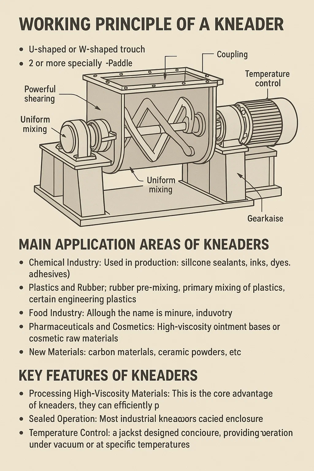 ▸ Пластмассы и резина: используются для предварительного смешивания резины, первичного смешивания пластмасс и переработки некоторых конструкционных пластмасс.
